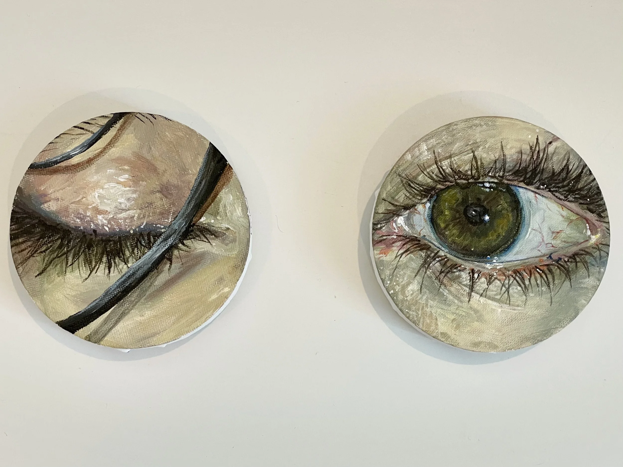 "Eye Diptych." 2021. acrylic on canvas 5" diameter each